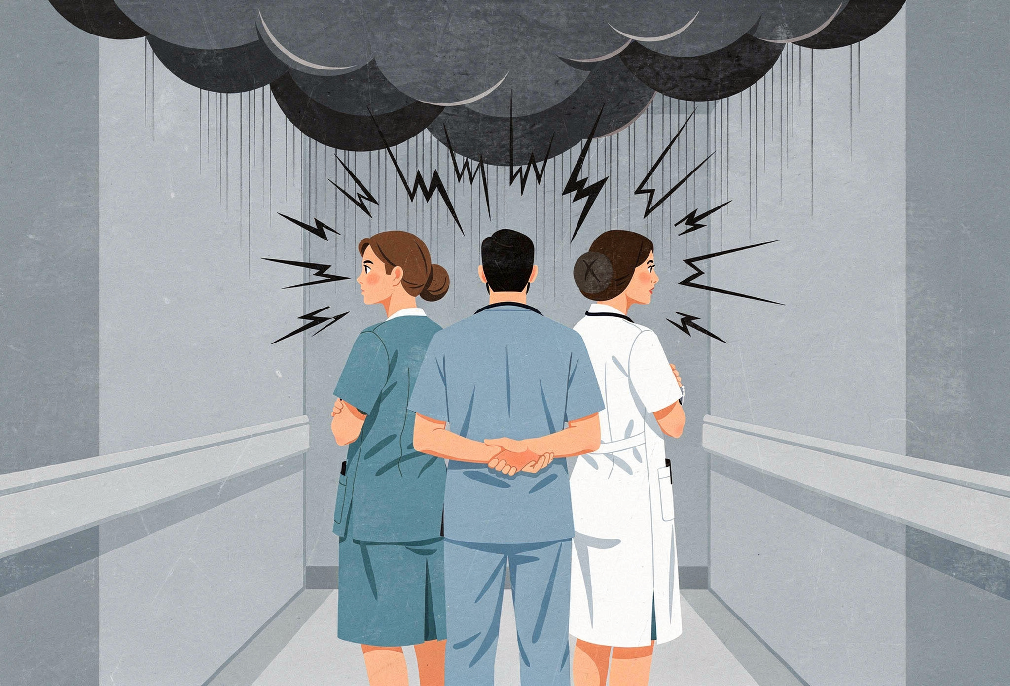 夜勤や長時間労働が常態化し、燃え尽き症候群(バーンアウト)のリスクが高まっている。